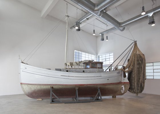 Une autre piste serait de solliciter l'artiste italienne Elisabetta Benassi pour réutiliser un bateau de pêche italien qu'elle a utilisé pour son installation "Mareo Merz" en 2013 :